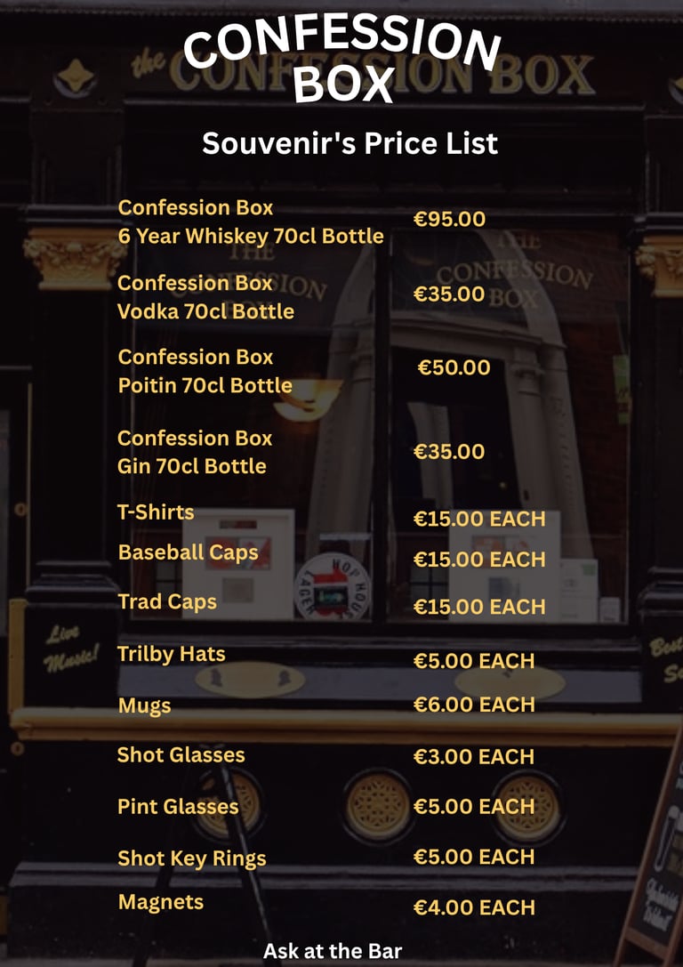 Enjoy the real Irish experience with our own brand The Confession Box Whiskey